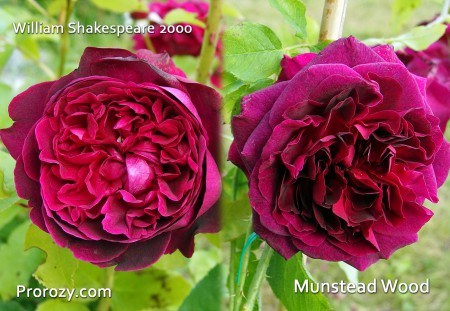 Прошу ознакомится на фото ниже с розово-пурпурным рядом английских роз. Здесь, конечно, не хватает цветов таких представителей, как Falstaff и Darcey Bussell. Постараемся их со временем добавить. Но в любом случае, Munstead Wood будет самой глубокой, самой темной розой в этом ряду.